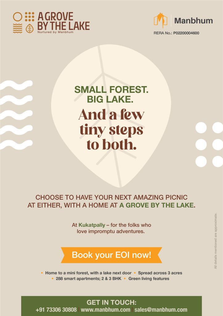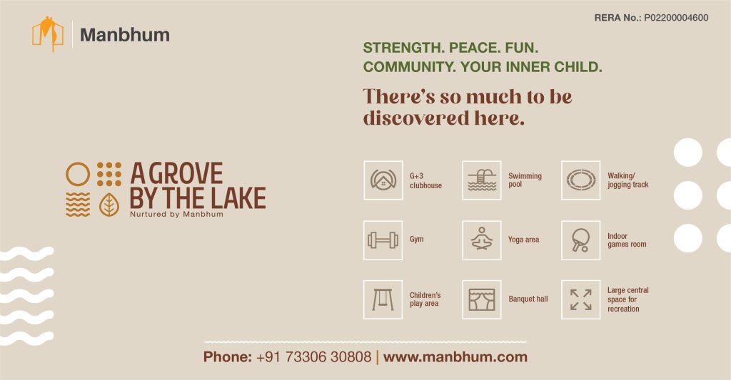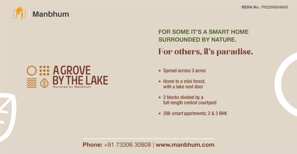 Designed to be a little piece of paradise in the heart of the city, A Grove by the Lake by Manbhum Constructions comes with its very own mini forest (called the Miyawaki forest), and a lake right next door. And with every possible amenity included, it’s where both sides of luxury meet — a great automated home, and the great little outdoors.