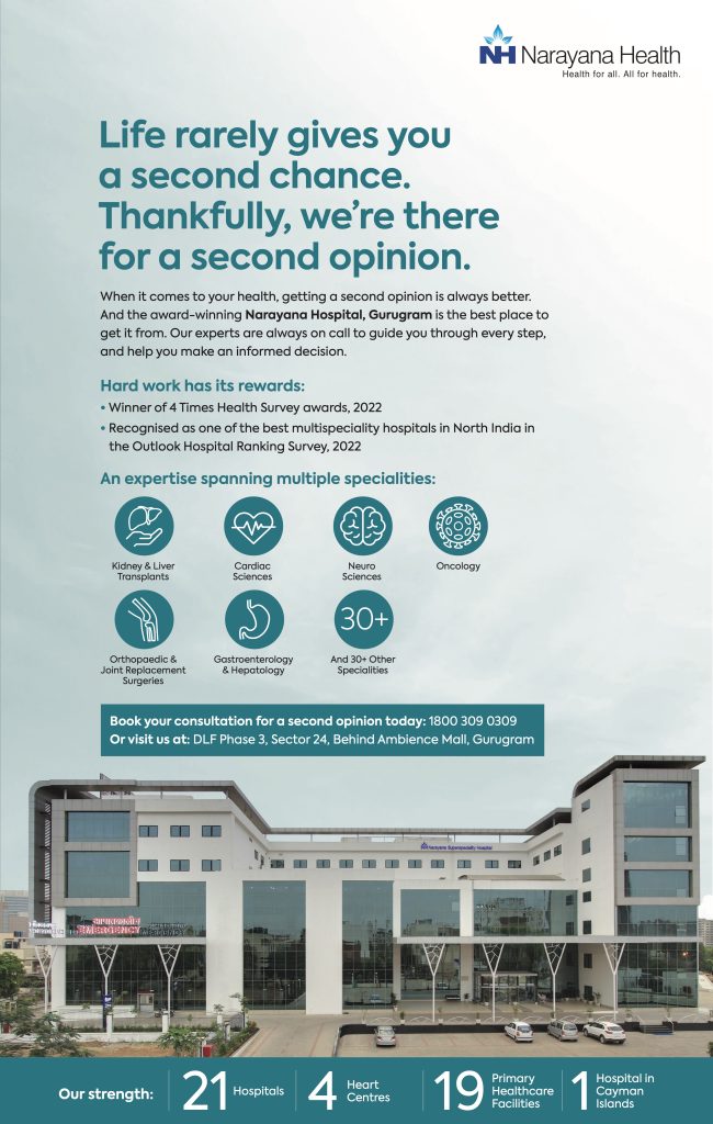 Acutely aware of this, we designed a hard-hitting full-page ad for Narayana Health that said one thing clearly — you rarely get a second chance at life. But to get that, your best bet is a second opinion from us.