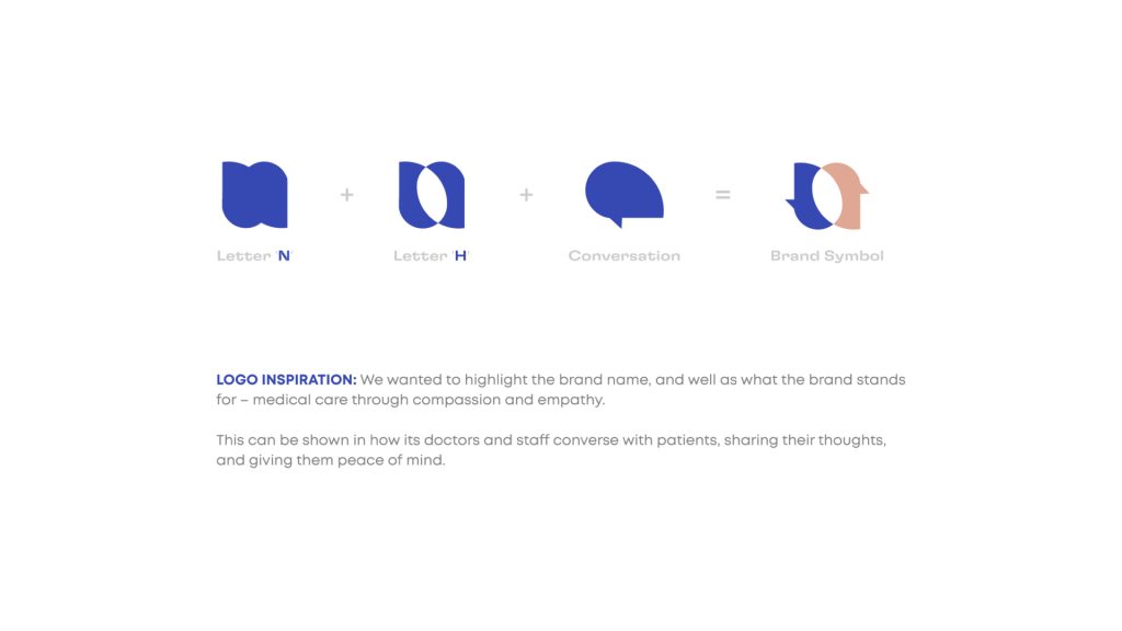 To highlight the name, and how the brand stood for medical care through compassion and empathy, we designed a brand symbol that at once symbolised multiple things — the hospital’s initials; a conversations between the doctor & staff with the patient; and a meeting of minds, where there is an open dialogue about the patient’s fears, the doctor’s hope, the procedures, and ultimately, peace of mind.